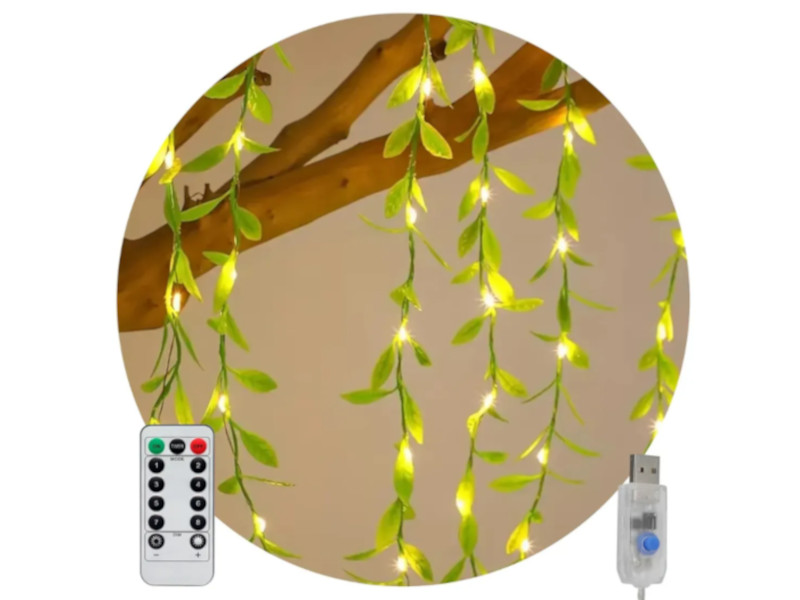 CORTINA 3 X 2 METROS BLANCO CALIDO CON HOJAS Y CONTROL REMOTO USB